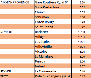 Le départ depuis l’Esplanade Saint-Denis à Rognes, initialement prévu à 6h50, sera avancé à 6h40 tous les matins pendant la période des travaux.